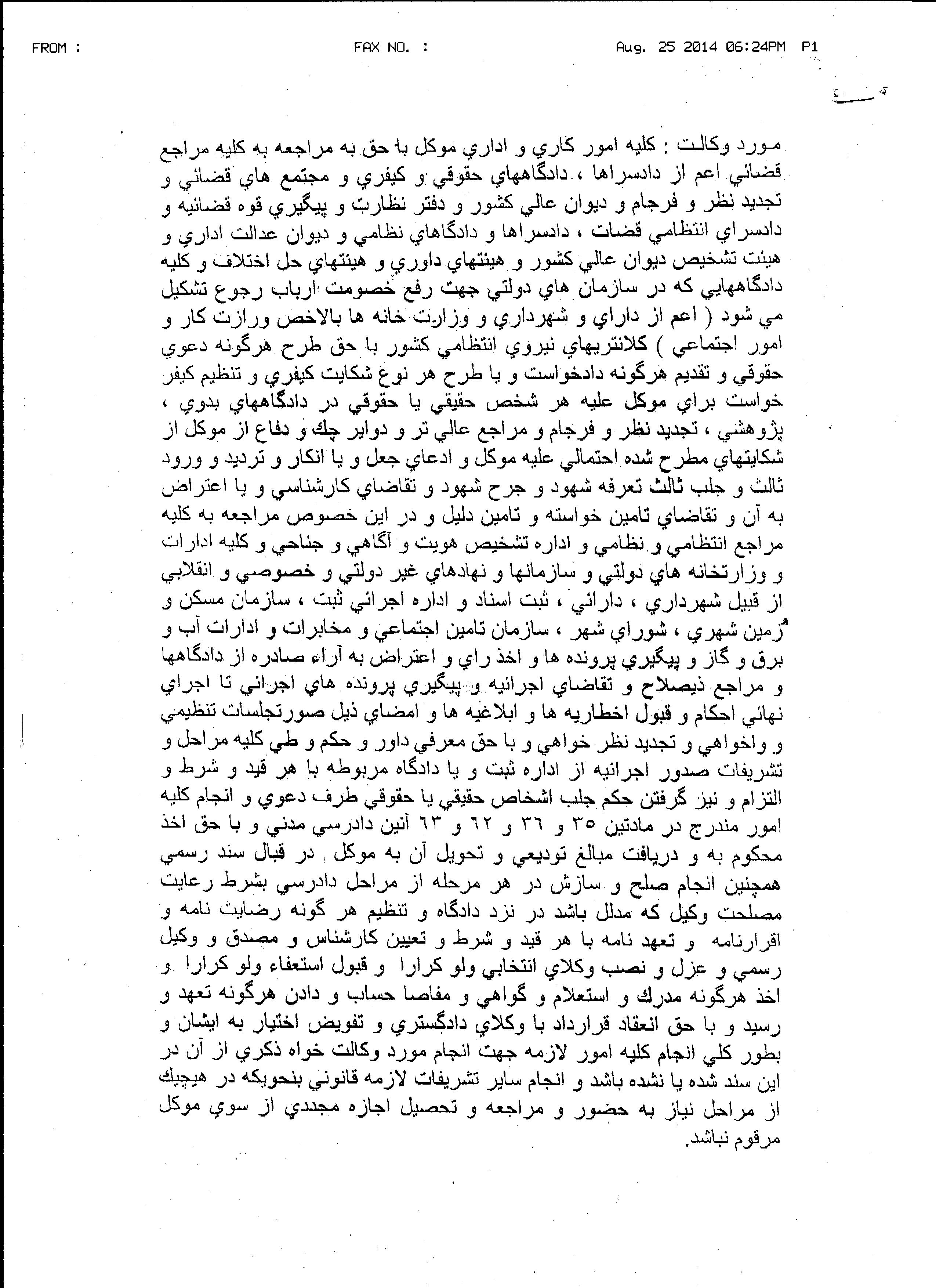 از آنجا که دعوت دوستان از تقریباً تمامی استانها صورت می پذیرد و به طور حتم زحمت زیادی را برایشان بوجود خواهد آورد ، تلاش می گردد تا متن جامع و مرتبط با موضوع وکالت تنظیم گردد و مدارکی که شاید در روند کار مورد نیاز واقع شوند را از ایشان مطالبه نمائیم تا مجبور به دوباره کاری نگردیم.